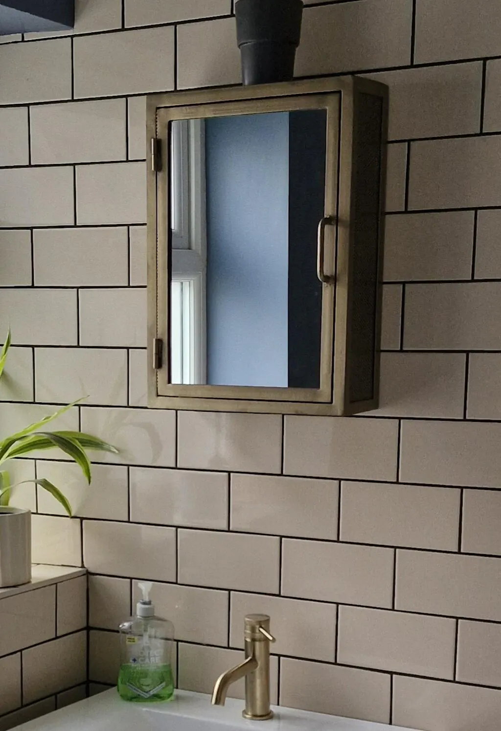 Industrial Mirrored Bathroom Wall Cabinet - Antique Brass